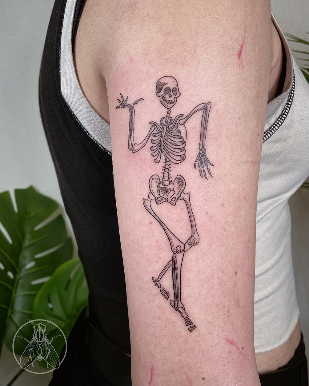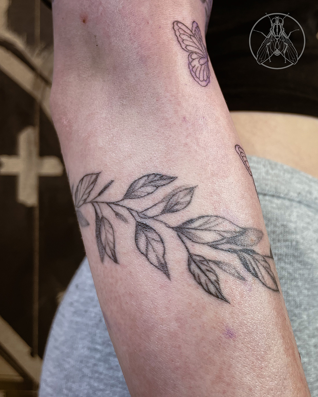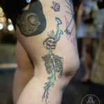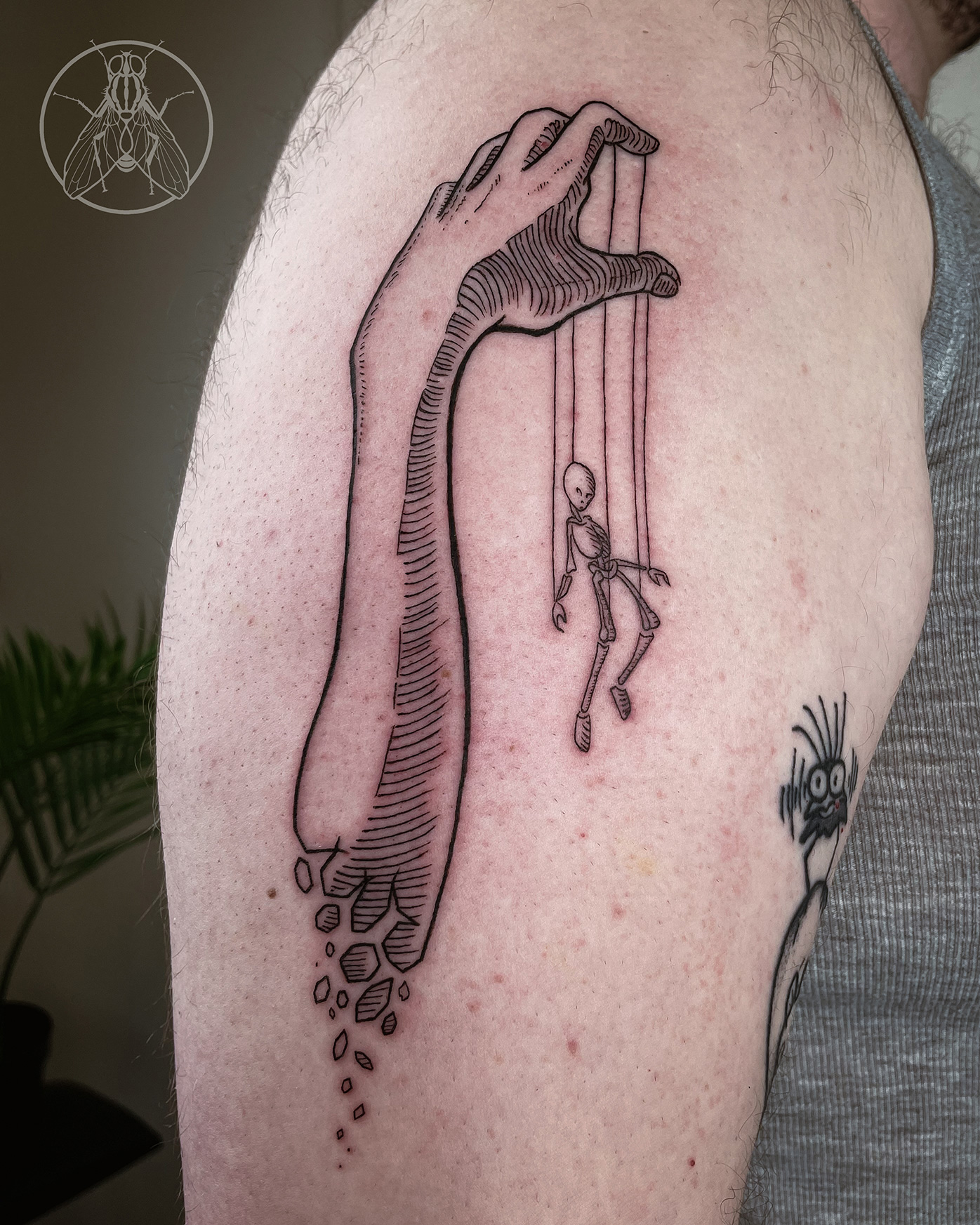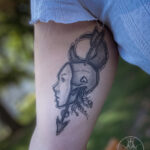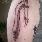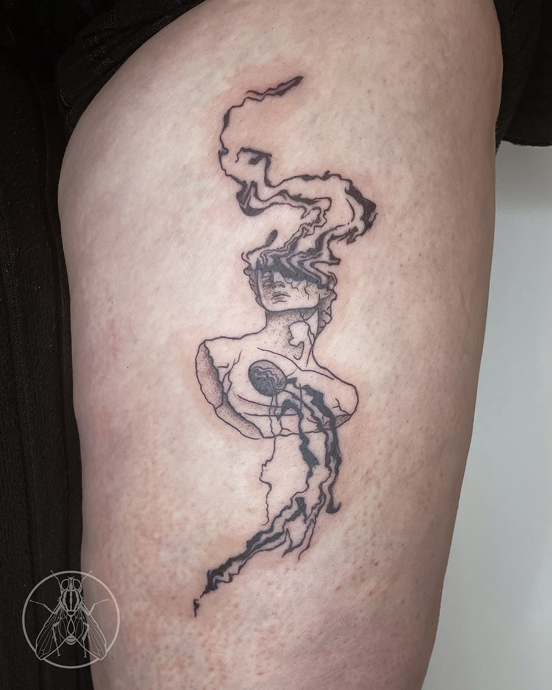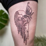 Johanna tätowiert seit 2020, am liebsten surreale bzw. illustrative Motive. Hauptsächlich greift sie zu Schwarz und Grau, ab und an dürfen es auch ein paar farbliche Akzente sein. Kleine und niedliche Fineline–