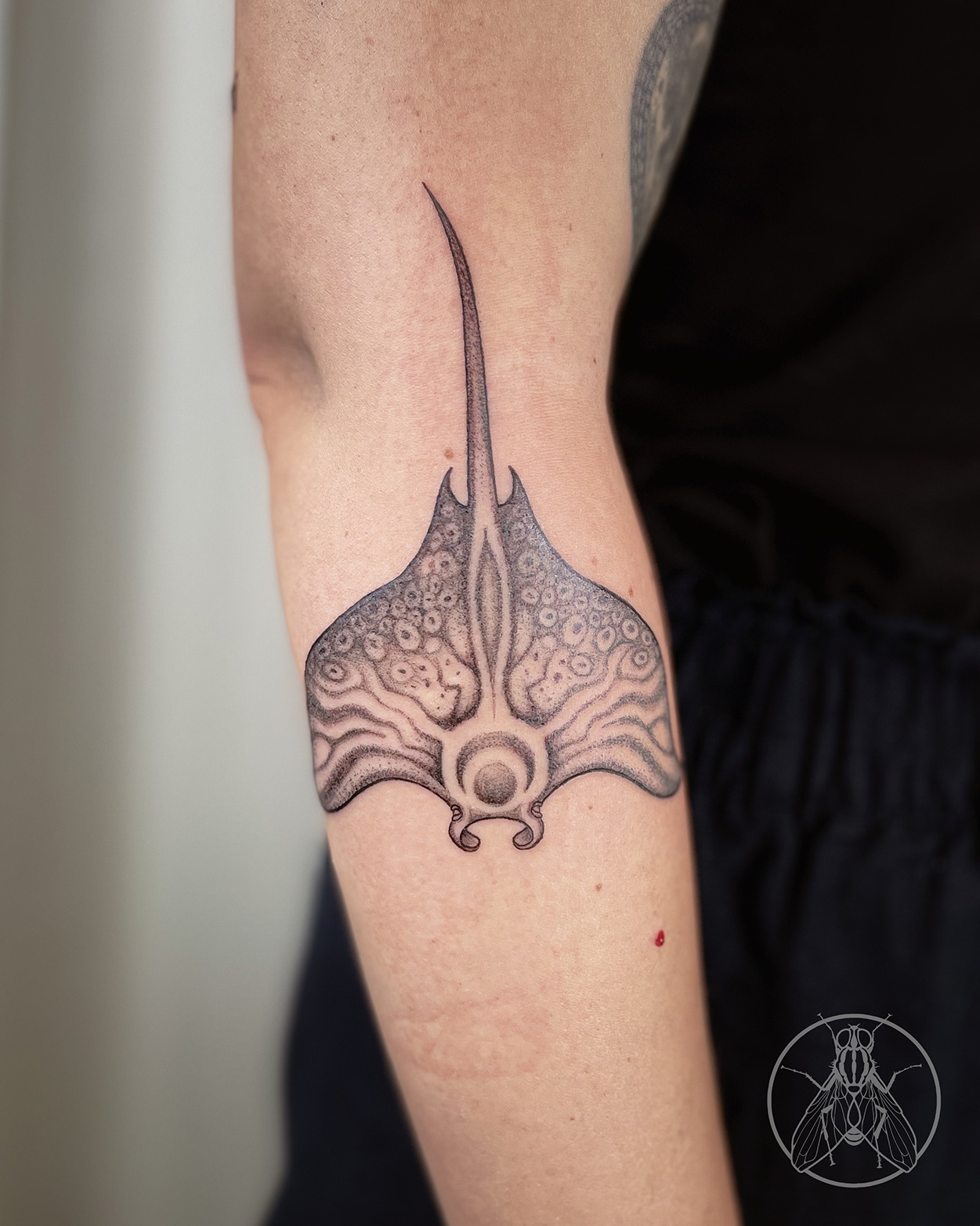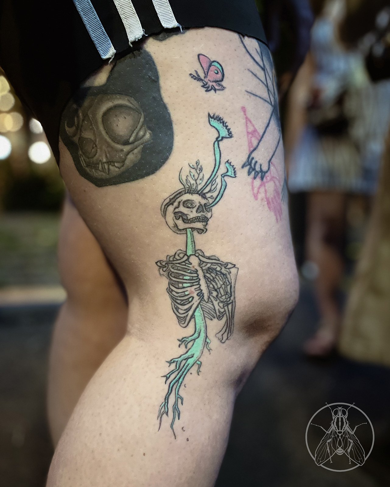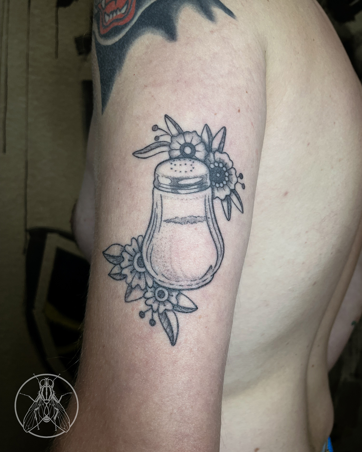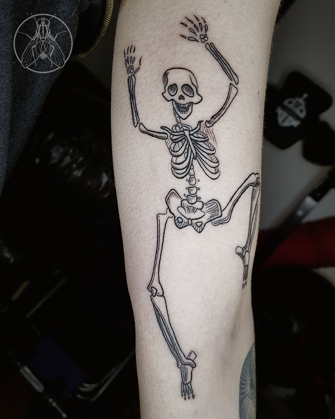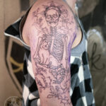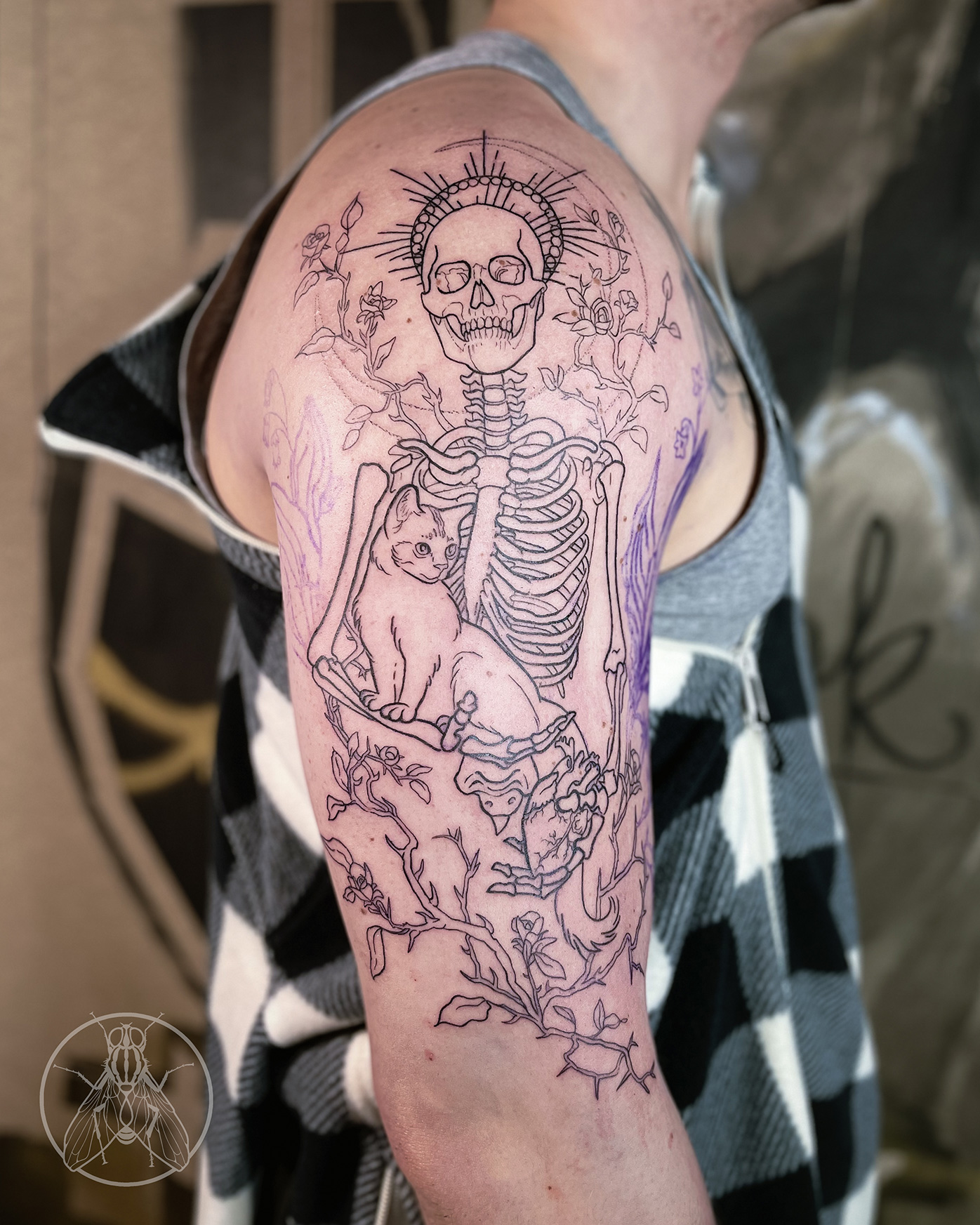 Johanna tätowiert seit 2020, am liebsten surreale bzw. illustrative Motive. Hauptsächlich greift sie zu Schwarz und Grau, ab und an dürfen es auch ein paar farbliche Akzente sein. Kleine und niedliche Fineline–